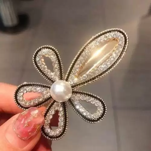 مشبك شعر حجر الراين مزخرف بزهر